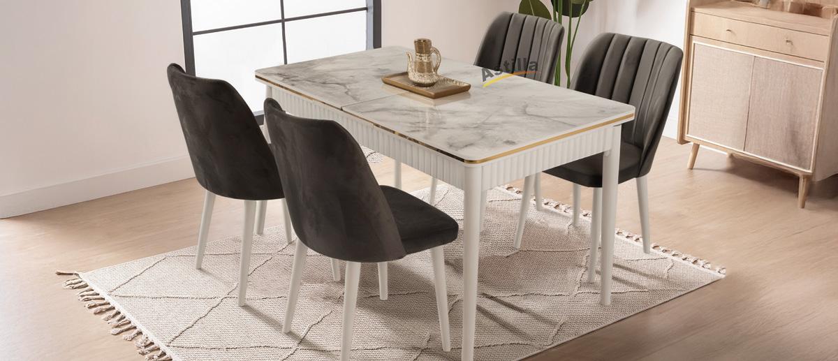 kelebek masa beyaz mermer 80x130 5800 ₺ milano sandalye beyaz gri 2.400₺